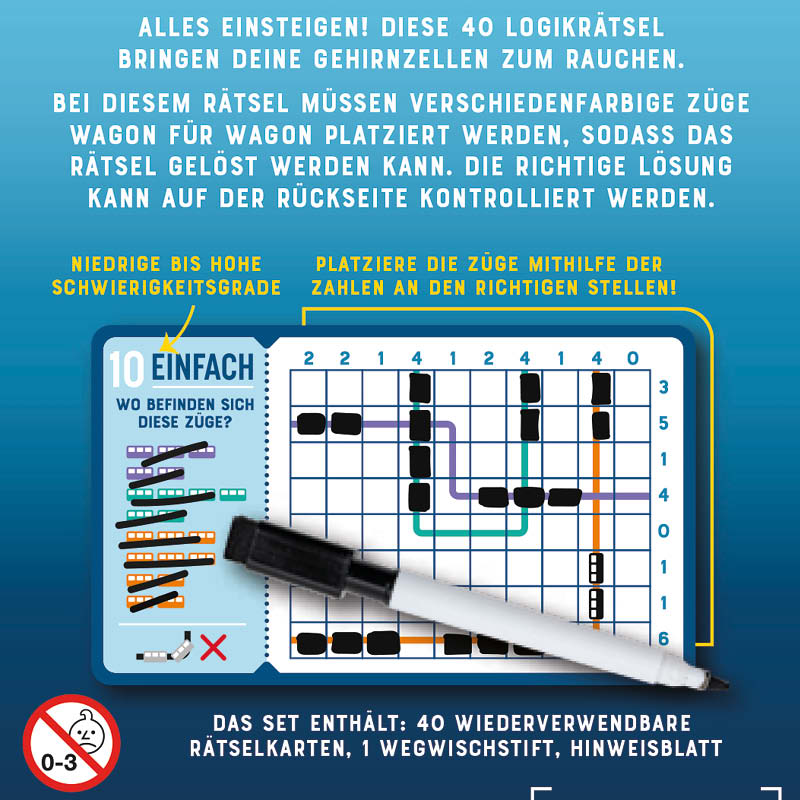 | Inhalt: | 40 wiederverwendbare Rätselkarten, 1 Wegwischstift |