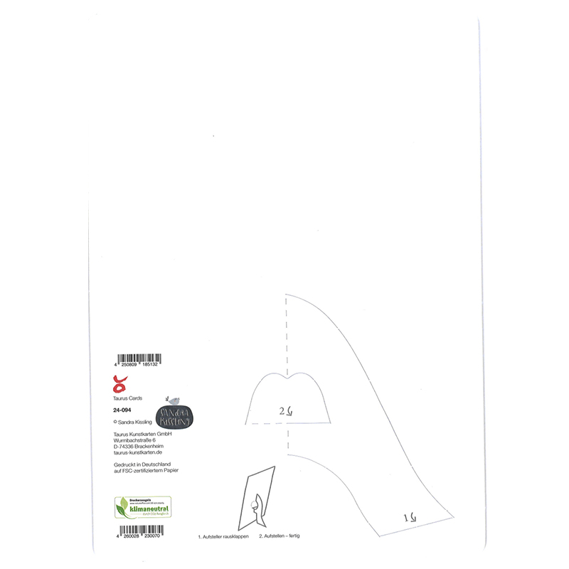| Besonderheiten: | mit Stanzteil auf der Rückseite zum Aufstellen, abgerundete Ecken |
